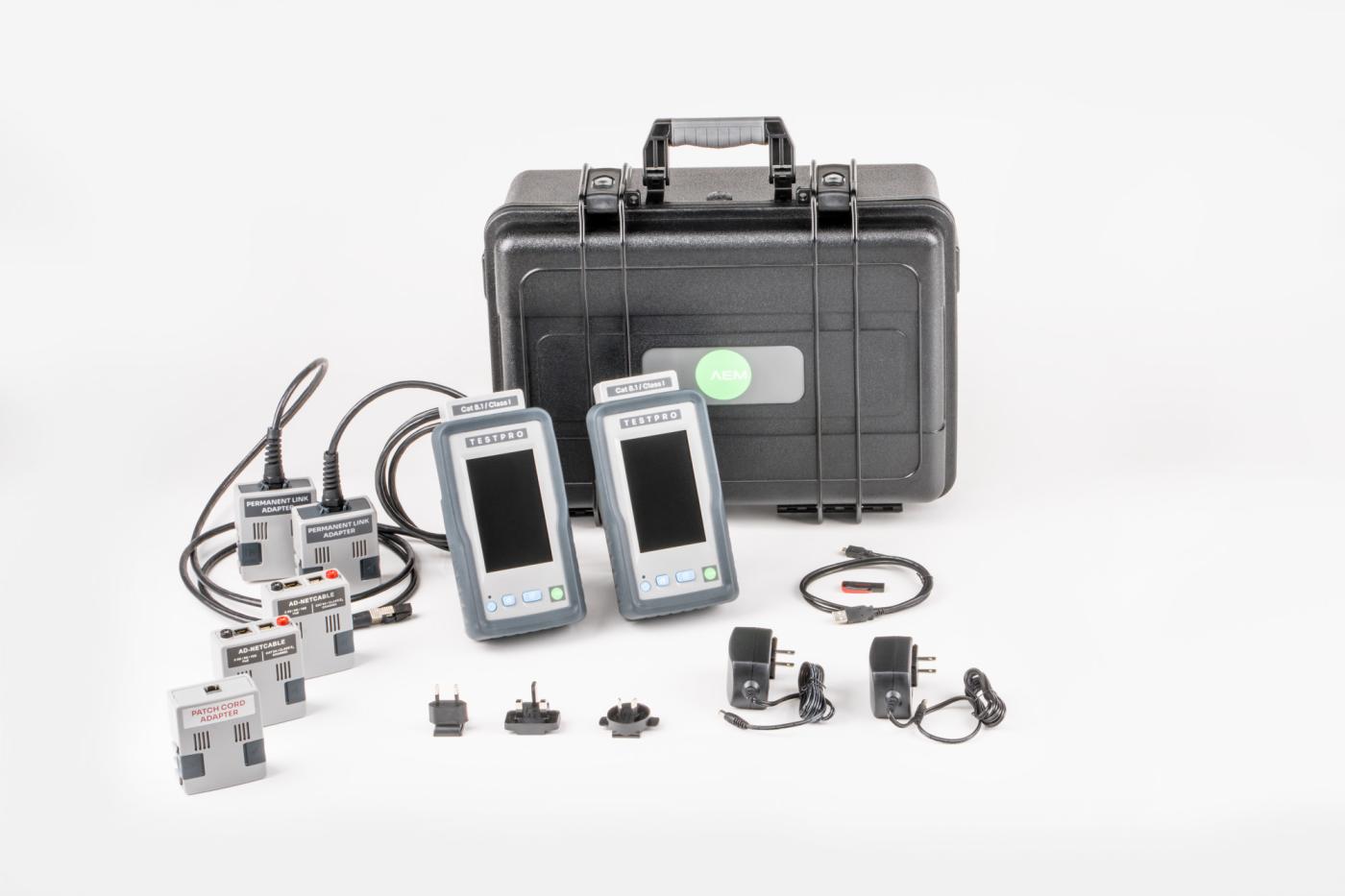 TestPro-K60E je doplněný o 2ks TP-AD-NETCABLE adapterů pro PoE a Multi-Gig SNR testování a 1ks AD-6A-PCORD-SINGLE (podpora MPTL testování).